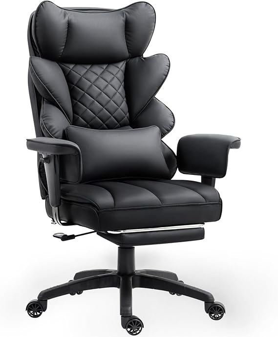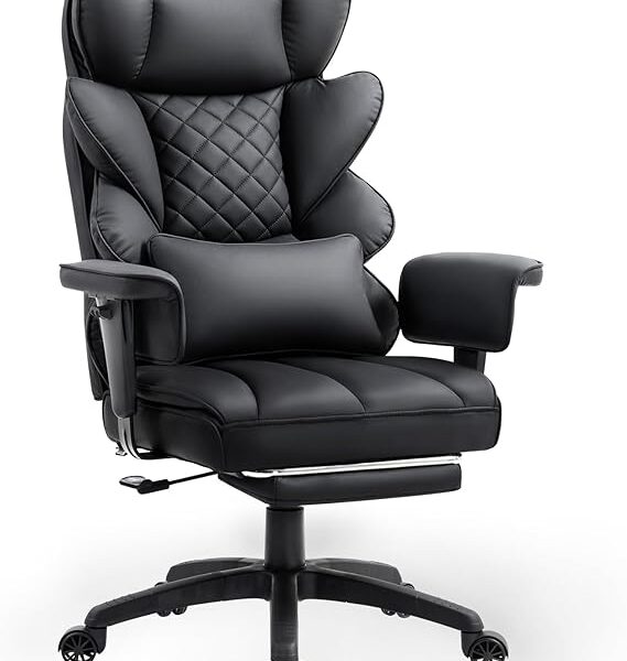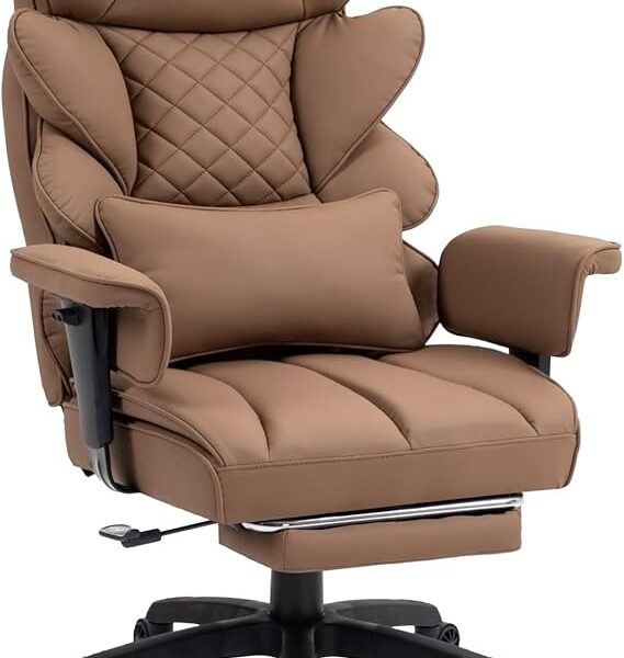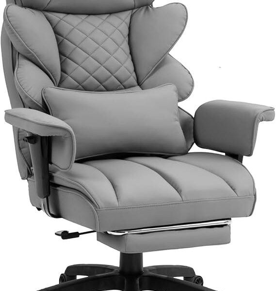 Dowinx Leather Office Chair Ergonomic Desk Chair, Swivel Heavy Duty Executive Computer Office Executive Chair with Footrest Head Lumber Support for Adult Teens Comfy Soft Reclining