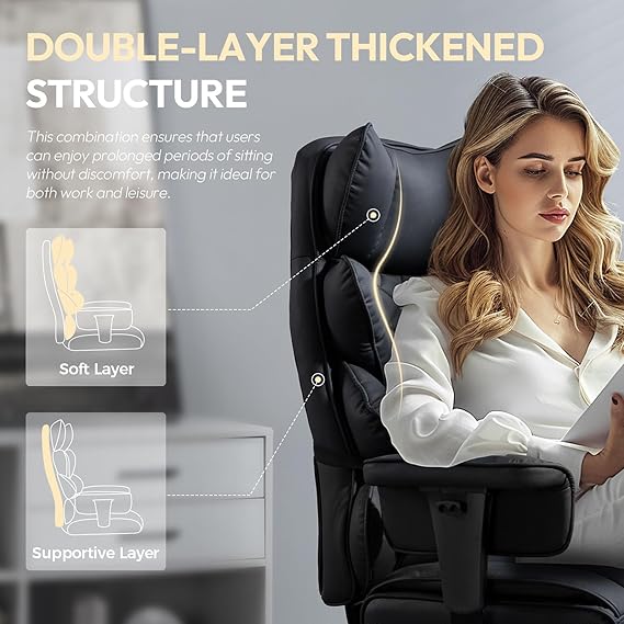 - Adjustable Reclining to Meet All Your Needs: The pc office computer chair backrest supports a wide range of tilt locking from 90° to 135°, coupled with a retractable footrest, allowing for most occasions. The 90 ° upright mode is suitable for office work, the 110 ° relaxed mode is ideal for entertainment, and the 135 ° mode can be used for rest. Whether it’s gaming, reading, or playing on your phone, you can find the most comfortable angle