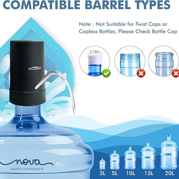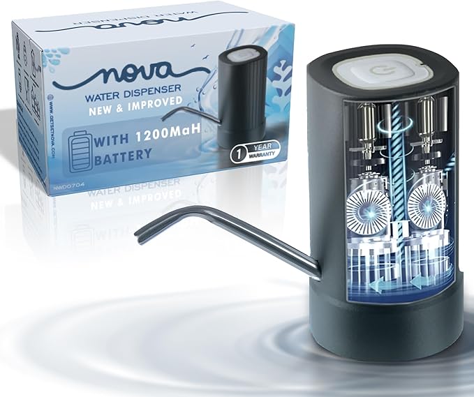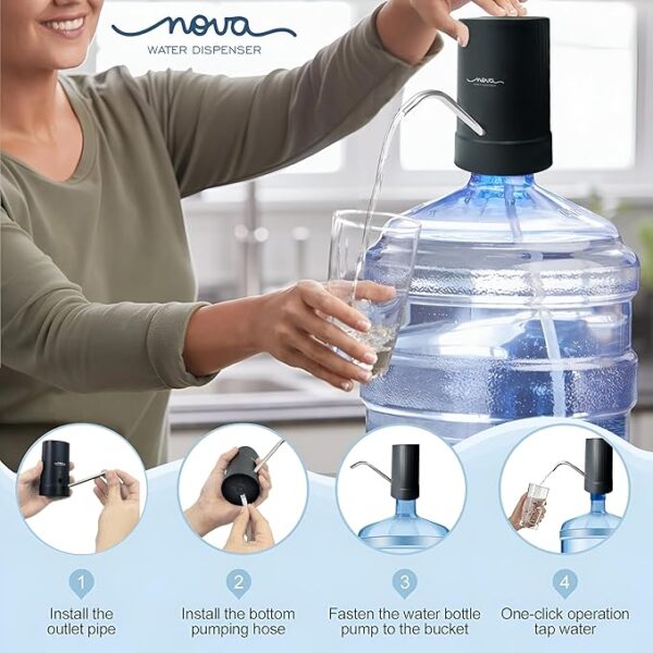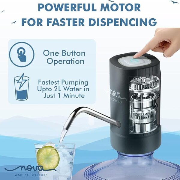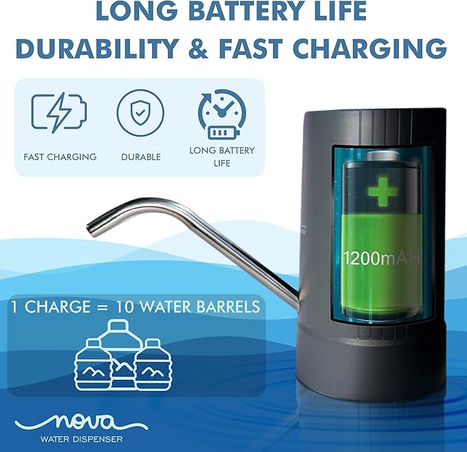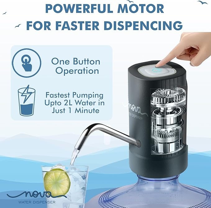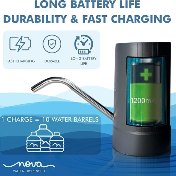 GetSetNova Automatic Electric Water Dispenser Pump for 20 Litre Bottle Portable Water Pump Dispenser for Home Office, and Outdoors | 1200 mAh C-Type Fast Charging Battery (Black)