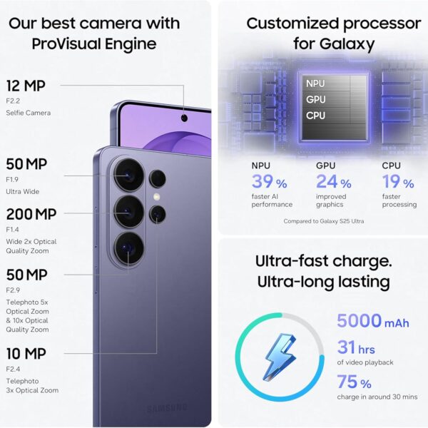 Customized AP,Privacy Display, PhotoAssist, 200MPCamera, 5000mAhBattery, 2 YearExtended Warranty (UAE Type Approved)(Amazon Exclusive)