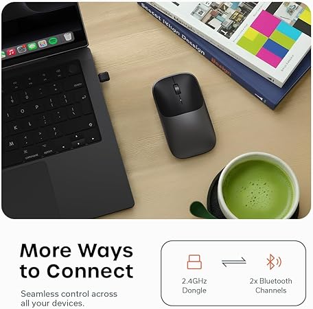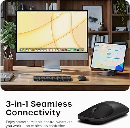 - 𝟑-𝐢𝐧-𝟏 𝐌𝐮𝐥𝐭𝐢-𝐃𝐞𝐯𝐢𝐜𝐞 𝐅𝐫𝐞𝐞𝐝𝐨𝐦 – Switch between two Bluetooth channels and a 2.4GHz USB-C receiver with no re-pairing — control Mac, Windows, tablet, and desktop effortlessly.