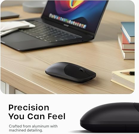 Satechi Slim EX Wireless Mouse, Multi-Device Bluetooth & 2.4GHz Connection for macOS, Windows, iPadOS, and Android, Silent Clicks, Anodized Aluminum Shell, USB-C Rechargeable Battery – Space Black