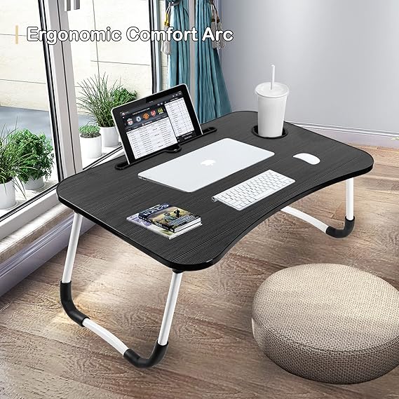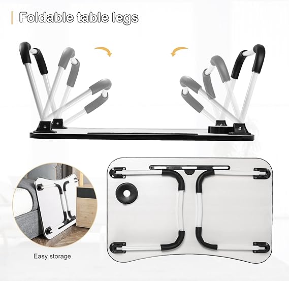 - High Quality Material – The foldable laptop table is made of medium density fiberboard (MDF) and round aluminum alloy tube frame. It has an ergonomic curved desk design that is sturdy and durable. The laptop bed stand is very light and easy to carry, allowing you to easily complete work on the bed, sofa or floor.