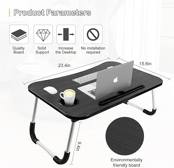- Multiple Uses – The foldable laptop desk does not need to be installed and can be used directly when opened. Product size: 23.6 inch x 15.5 inch x 10.4 inch. The laptop portable desk is very practical, you can put it on the bed, sofa, or on the floor, when you go out camping, you can also bring it, can be used as a small picnic table.