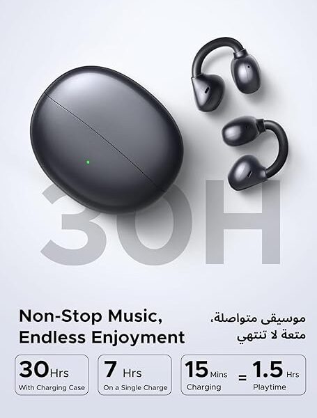 - 30-Hour Playtime: These open-ear earbuds provide over 30 hours of playback on a single 2-hour charge. The case battery capacity is 400mAh. Charging the earbuds for just 10 minutes allows for up to 120 minutes of music listening time using a fast-charging USB-C cable.